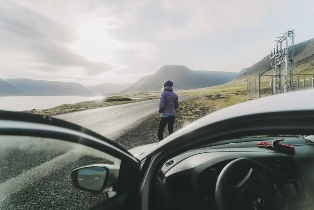 una donna in piedi su una strada